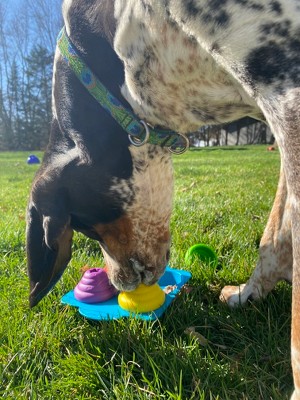 - Cupcake Surprise: Hide treats in the tray, place the four colorful cupcake toppers, and watch your dog puzzle out the solution!