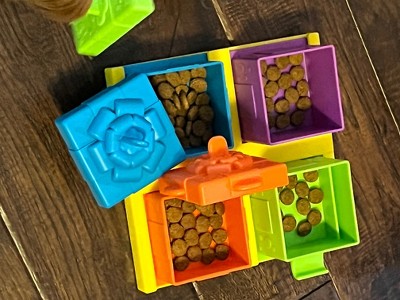 [This review was collected as part of a promotion.] This treat puzzle was not only fun for my shih tzu but also my son. He enjoyed hiding the treats and watching her get them. All of the hiding spots are cute and easy to use. The only one mine had a problem with was the green drawer. She has a short snout so it wasn't super easy to get open. Overall loved this!