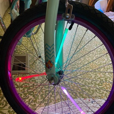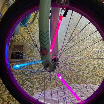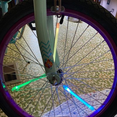 LIKES: My daughter loves the colors and brightness. They also change color! She gets a lot of compliments on our nighttime bike rides. Perfect for safety, you can even see them with street lights on! **It DOES have to be dusk before they are noticeable when turned on. They blend in pretty well with her bike spokes and are not noticeable during the day- unless you’re really looking for them, of course. The lights are also very tight fitting and it takes a bit of pressure to snap them on to the spokes or reposition them if you need to adjust the placement. I also like that the lights have on/off buttons rather than being motion activated, so you’re not draining the batteries during the day when the lights can’t be enjoyed. If possible, lay them out and test them before putting them on the bike, to make sure they work. The pics below were taken during the day and indoors, as you can imagine they are MUCH brighter at night. ******************* DISLIKES- they were pretty tricky to put on. It took me about 45 mins, but I was also very careful that the wires did not interfere with the wheel or brakes. They DEFINITELY need better instructions, perhaps even suggestions of where to start on each wheel (depending on the tire size). It looks really cool in the video, but the majority of my times was spent trying to figure out placement.