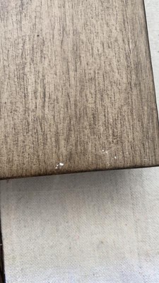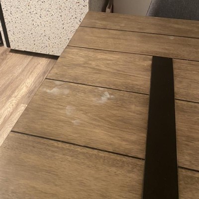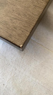 side line came ruptured, few chips on the edge. Very disappointed, return and exchange is very inconvenient because the table is really heavy. Will not buy furniture from Target again, disappointed at Target’s quality control.