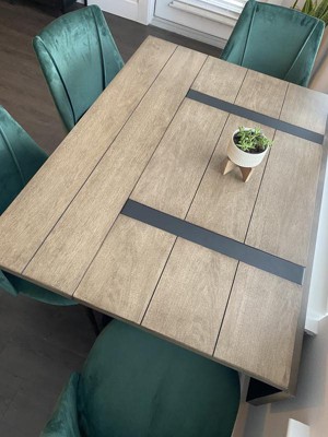 I thought this table would be a good fit for my small dining room. It is not worth the money even at sale price. The wood is not real wood and it is peeling on the edges. The metal legs are all scratched up. Unfortunately I can’t even take it back to the store because it won’t fit in my vehicle to return it I ordered it online and had it delivered to my home