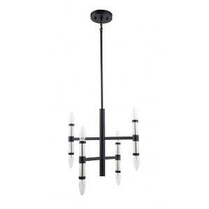 This 8-light black modern linear chandelier will make a statement in any home. The sleek design, black finish, and ribbed glass decorative sleeves add sophistication to any space, while the twelve bulbs provide plenty of light to illuminate the room. Perfect for modern or contemporary decor, this chandelier will surely add a unique and stylish look to any home. Hard wired 8-light decorative Chandelier / Can mount on sloped ceiling / High quality finish with premium glass shades / Compatible with LED Bulbs / Adjustable-Includes four 12 inch and one 6- inch rods / Constructed from quality steel / Rated for installation in dry and damp locations. ,
