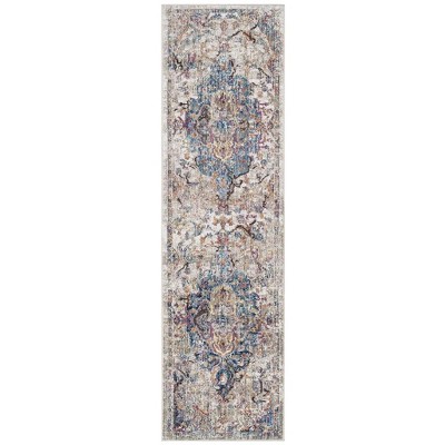 The luxurious pile, standing at a comfortable height of 3/8", is made entirely of polyester fibers, offering a soft and inviting texture underfoot. Not only is this runner a visual treat with its serene blue and light grey hues, but it also features a mesmerizing pattern that will captivate your guests. The intricate design, which elegantly combines flowing florals and ornamental elements, brings a sense of depth and artistry to any corridor or elongated space.