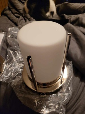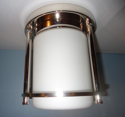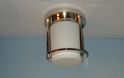 [This review was collected as part of a promotion.] This is a great looking light that was easy to install and has added a touch of elegance to my space. The light has a nice chrome finish and I like the way the light looks through the frosted glass. This light has been a definite upgrade.