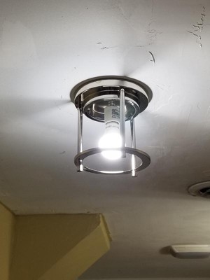 [This review was collected as part of a promotion.] This light was a pleasure to install. I hate working over my head, with this light you can do 90% of the install before getting on the ladder. I dropped the builder-grade hall light that has probably been in the house for 50 years, installed the new bracket, wired it up and twisted the new light into place, done. This provides a much softer, diffused light than the clear glass globe we had up previously.