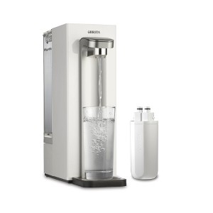 - SIMPLE PUSH-BUTTON DISPENSING: Enjoy refreshing water any time with easy push-button dispensing. Press and hold the button to dispense or double-press for continuous dispensing. The spout fits glasses and water bottles up to 12" tall.