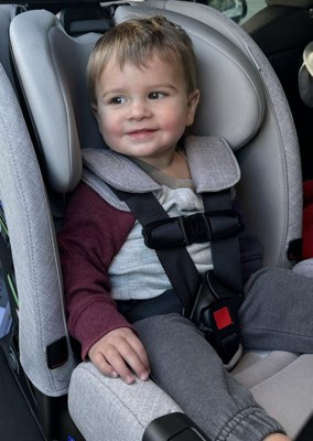 [This review was collected as part of a promotion.] I was given this car seat to try as part of the Stellar Product Testing Panel. I’ve used this car seat in my small SUV and my husband’s hatchback and it fits in both (though we had to move the front seat all the way up in the hatchback). I really like the look and feel of the car seat, it’s slim enough to still have two useable back seats, the padding and fabric feel high quality, and my toddler seems comfy in it. Installation was a breeze with the click tight access under the seat, and the user manual was very easy to follow. I appreciated that the infant inserts are labeled with weight limits so it’s very clear when to remove them. I also really like the cutout design of the sides, which lets you stow the harness clips so they stay out of the way when getting baby in and out, although my son likes to use this to sprawl out his legs. My 21lb 31”+ inch baby fits with plenty of room to grow, and I’m glad this will let him stay rear facing as long as possible. I did notice a rattling noise in the headrest but we were able to dampen it with some padding. Also I found it difficult to tighten the harness - you really need some good grip strength and to squeeze your hand it to get a good angle. Other than that it’s a great car seat that seems like it will have a lot of longevity.