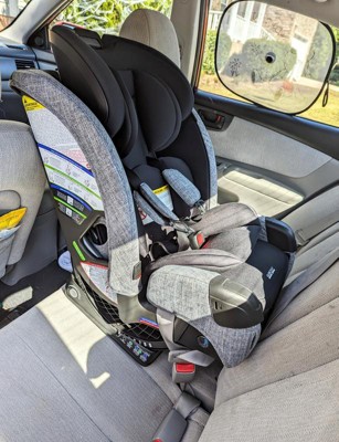[This review was collected as part of a promotion.] I was given this car seat to try as part of the Stellar Product Testing Panel. I’ve used this car seat in my small SUV and my husband’s hatchback and it fits in both (though we had to move the front seat all the way up in the hatchback). I really like the look and feel of the car seat, it’s slim enough to still have two useable back seats, the padding and fabric feel high quality, and my toddler seems comfy in it. Installation was a breeze with the click tight access under the seat, and the user manual was very easy to follow. I appreciated that the infant inserts are labeled with weight limits so it’s very clear when to remove them. I also really like the cutout design of the sides, which lets you stow the harness clips so they stay out of the way when getting baby in and out, although my son likes to use this to sprawl out his legs. My 21lb 31”+ inch baby fits with plenty of room to grow, and I’m glad this will let him stay rear facing as long as possible. I did notice a rattling noise in the headrest but we were able to dampen it with some padding. Also I found it difficult to tighten the harness - you really need some good grip strength and to squeeze your hand it to get a good angle. Other than that it’s a great car seat that seems like it will have a lot of longevity.