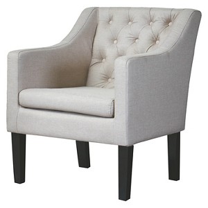 "Go ahead, it's OK to sit down," you'll say to guests again and again. Our contemporary Brittany Club Chair expresses elegance. You couldn't ask for more in a discount- furniture item: modern-styled, black-stained solid straight wood legs contrast spectacularly with tufted-detailed linen upholstery. 24.5"W X 24"D X 31.25"H, SEAT 19.5"W X 19"D X 18.25"H