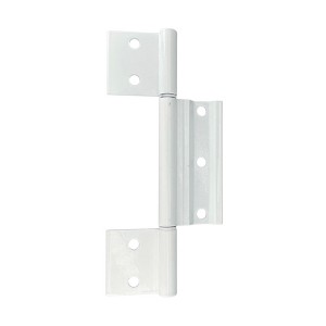 The Brixwell Storm Door Gravity Hinge is intended for storm and screen door applications that require offset hinge mounting. It features a 3-leaf offset hinge configuration and operates through gravity action to control door movement during opening and closing. The hinge is manufactured from steel and finished in white, providing a consistent surface appearance suitable for common door and frame finishes. The hinge barrel measures 2-3/32" in length and 1-1/16" in width. Each hinge leaf has a length of 23/32". These dimensions are specified to support proper alignment, fit, and function when installed on compatible storm or screen door assemblies. The offset hinge design accommodates door positioning requirements where standard hinge alignment is not suitable and allows controlled door operation through gravity-based movement. This hinge may be used for replacement of existing gravity hinges or for new installations where this hinge type is specified. Installation is performed using standard hand tools with appropriate preparation of the door and frame.
