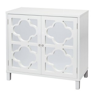 The Lifestorey Broadway Mirrored Cabinet features a mirrored door enriched with a detailed quatrefoil pattern and silver knob. Square tapered legs complement the overall sophisticated design. Perfect as an added accessory cabinet in your living, dining or as a bedside table. This elegant cabinet in a crisp white finish, makes a statement on its own or pair two side by side for additional impact and storage space.