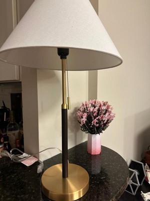 Elevate your mid-century modern inspired space with the Bromley Table Lamp from Ink+Ivy. Its sleek design, two-tone finish, and tapered empire fabric shade add a touch of refinement. Easy to use with a pull chain switch, polarized plug, and 60" cord. 1 Type A, 60W maximum wattage light bulb is needed; one 9W LED bulb is included.