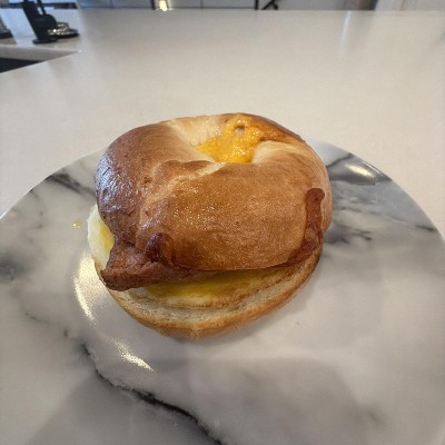 - Bagel breakfast sandwich with turkey bacon, real egg, and real cheese