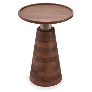 Perfectly blending mixed materials the sleek, streamlined Bronwyn Side Table offers true functionality with an artful element. The variation in tones and patterns of the solid acacia wood make each piece innately unique while the sturdy cone-shaped pedestal base adds an undeniable architectural design. Suitable for just about any room in your home, this table has a look that is meant to stand out.