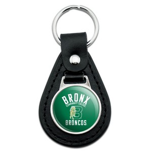 Bronx Community College Broncos Logo Black Leather Keychain