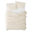 [This review was collected as part of a promotion.] This Brooklyn Loom Marshmallow Sherpa comforter set is super warm and fuzzy! The texture is very cozy and homey. It washes well, not tons of lint. For me, the two shams are not as thick as the comforter, and feel a little cheaper. I also think the color skews a little too orange- my duvet is bright white, and my other blanket is off white- my photos wash it out a little but it's a little like French vanilla meets creamsicle color. But so comfy for winter!