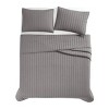 Crisp, cool and lightweight, just like your favorite button-down shirt. Made from percale 100% tight-weave cotton, making it more breathable for a good night’s rest especially for hot sleepers. Softer with every wash, while also giving that crisp hotel look, especially when ironed. Bring texture into your room with a different surface texture with the two inch vertical channel stitch with a two inch flange on the quilt face. The quilt is filled with 100% polyester fiber fill for year round comfort. You can rest assured this program is made responsibly with OEKO-TEX Standard 100 Certification with certificate 14.HIN.38767 as certified by Hohenstein. Face and back are 200 thread count, 100% cotton percale weave for a nice crisp feel. The quilt is filled with 100% down alternative polyester filling for all season use. This item is machine washable, but please be sure to use appropriate sized machinery to avoid any excess wear on the items. Includes: one quilt 90 inches wide by 90 inches long and two standard shams 20 inches high by 26 inches wide.