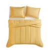Crisp, cool and lightweight, just like your favorite button-down shirt. Made from percale 100% tight-weave cotton, making it more breathable for a good night’s rest especially for hot sleepers. Softer with every wash, while also giving that crisp hotel look, especially when ironed. Bring texture into your room with a different surface texture with the four inch vertical channel stitch with a 2 inch flange on the comforter face. The comforter is filled with 220 GSM of 100% polyester fiber fill for year round comfort. You can rest assured this program is made responsibly with OEKO-TEX Standard 100 Certification with certificate 14.HIN.38767 as certified by Hohenstein. Face and back are 200 thread count, 100% cotton percale weave for a nice crisp feel. The comforter is filled with 100% down alternative polyester filling. This item is machine washable, but please be sure to use appropriate sized machinery to avoid any excess wear on the items. Includes: one comforter 106 inches wide by 90 inches long and two king shams 20 inches high by 36 inches wide.