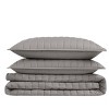 Crisp, cool and lightweight, just like your favorite button-down shirt. Made from percale 100% tight-weave cotton, making it more breathable for a good night’s rest especially for hot sleepers. Softer with every wash, while also giving that crisp hotel look, especially when ironed. Bring texture into your room with a different surface texture with the two inch vertical channel stitch with a two inch flange on the quilt face. The quilt is filled with 100% polyester fiber fill for year round comfort. You can rest assured this program is made responsibly with OEKO-TEX Standard 100 Certification with certificate 14.HIN.38767 as certified by Hohenstein. Face and back are 200 thread count, 100% cotton percale weave for a nice crisp feel. The quilt is filled with 100% down alternative polyester filling for all season use. This item is machine washable, but please be sure to use appropriate sized machinery to avoid any excess wear on the items. Includes: one quilt 106 inches wide by 90 inches long and two king shams 20 inches high by 36 inches wide.