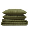Crisp, cool and lightweight, just like your favorite button-down shirt. Made from percale 100% tight-weave cotton, making it more breathable for a good night’s rest especially for hot sleepers. Softer with every wash, while also giving that crisp hotel look, especially when ironed. Bring texture into your room with a different surface texture with the two inch vertical channel stitch with a two inch flange on the quilt face. The quilt is filled with 100% polyester fiber fill for year round comfort. You can rest assured this program is made responsibly with OEKO-TEX Standard 100 Certification with certificate 14.HIN.38767 as certified by Hohenstein. Face and back are 200 thread count, 100% cotton percale weave for a nice crisp feel. The quilt is filled with 100% down alternative polyester filling for all season use. This item is machine washable, but please be sure to use appropriate sized machinery to avoid any excess wear on the items. Includes: one quilt 106 inches wide by 90 inches long and two king shams 20 inches high by 36 inches wide.