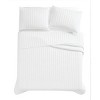 A natural white base cloth is the base for this texture plaid print. The large plaid features small textured print highlights to provide a more casual, classic look. Face cloth is 100% cotton fabric with a reverse in 100% microfiber polyester. The set in Face and back are 200 thread count, 100% cotton percale weave for a nice crisp feel. The quilt is filled with 100% down alternative polyester filling for all season use. This item is machine washable, but please be sure to use appropriate sized machinery to avoid any excess wear on the items. Includes: one quilt 106 inches wide by 90 inches long and two king shams 20 inches high by 36 inches wide.
