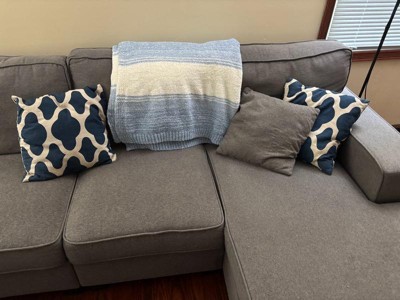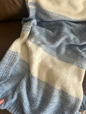[This review was collected as part of a promotion.] I was a little sad that this blanket came in stained but otherwise I love this blanket! It is super soft and feels just like a sweater. It's a nice accent to my dark couch. I really love the colors that were used