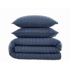 [This review was collected as part of a promotion.] This Brooklynn Loom 3 piece set is really nice quality. I love that the comforter is versatile. Therefore, you can use it for any season. It's a pretty navy blue color. The only thing that would make it better is if it came with sheets in the set. You get the comforter and 2 pillow cases. Although, I do love the comforter. It's been great on both hot and cold nights.
