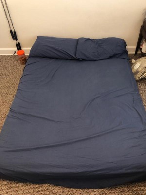 [This review was collected as part of a promotion.] I love the color of the sheets. They are a nice navy blue and they fit my queen mattress perfectly. They feel soft and easy to sleep in. These also look like they will be easy to wash!