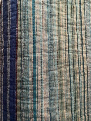 [This review was collected as part of a promotion.] Beautiful, lightweight quilt. The striped pattern is pretty and matches with my neutral decor. It’s the perfect size for my queen size bed. The only thing is that the pillow shams are huge! I have a regular sized pillow and there’s a ton of room leftover. All in all I love this quilt, it’s pretty, comfortable, and it’s the perfect addition to my bedroom this summer!