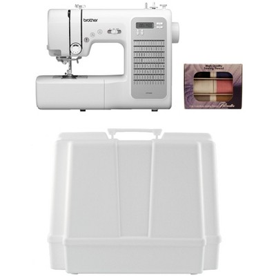 - Bundled with Brother accessories: Included hardcase is made of sturdy plastic with comfortable carrying handle and solid metal latches; Pacesetter poly core/poly wrap sewing thread in black, white, grey, blue, pink and taupe