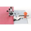 Genuine Brother Accessory. Horizontally adjustable seam guide. Screws on to needle plate for accurate seam measurement while sewing. Engraved measurement markings. Screws on in front of all Brother accessory feet for expanded visibility.