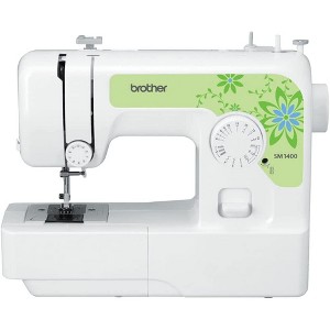 Brother's SM1400 offers the perfect set of features for everyday sewing and mending, at an affordable price. Lightweight yet full-sized, this machine can easily fit on a table or desk, then be carried and stored away when not in use. Included are 14 stitches for blind hems, stretch stitches, buttonholes, zipper insertion, and more. Selecting your stitches is as easy as turning the dial, and the tension control dial and reverse sewing lever give you added control at your fingertips. The four included quick-change presser feet allow you to easily insert zippers, create buttonholes, sew on buttons, and handle general sewing. This machine also has a built-in easy needle threader, jam-resistant Quick-Set top drop-in bobbin, clear-view bobbin cover and bobbin, automatic bobbin winding system, and a free arm for sewing cuffs and sleeves. Included are an instructional DVD to help you get started, and an English and Spanish user manual.