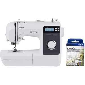 Sew on everything from multiple layers of heavyweight fabrics and denim to lightweight silks. 50 built-in sewing stitches, including decorative stitches and 5 styles of one-step, auto-sized buttonholes. Longer 7-point feed dogs with box feed design help provide smoother fabric feeding even with tough projects. The right and left feed dogs grab your fabric securely while the center feed dog holds the thread, for superior stitching and feeding. Included walking foot holds and moves the fabric between the foot’s upper feed dog and the machine’s lower feed dogs to better control difficult fabrics and multiple fabric layers. Expanded 6. 4” w x 4. 1" h needle-to-arm workspace provides more room for quilts and bulkier sewing projects. Includes two No. 14 heavy duty needles for sewing heavier fabrics such as jeans and leather, in addition to two No. 11 needles for light to medium weight fabrics and two No.14 ballpoint needles for knits and other stretch fabrics. Super wide stitch selection, with up to 7mm stitch width.