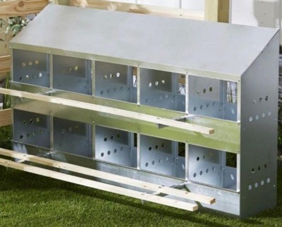 Treat your hens to a happy home while during their egg-laying period with the 2-Pack Brower Galvanized Steel 10 Hole 60 Bird Poultry Nest Chicken Brooding Box.
