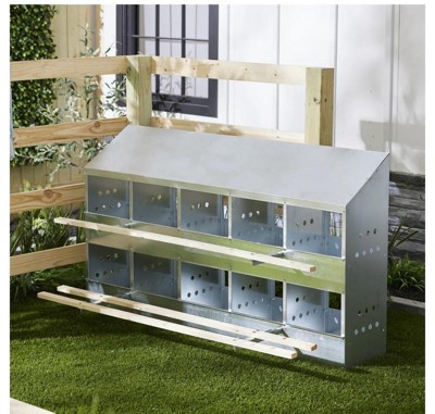 - 2-pack 10-bay nesting box offers a safe, private home for 50-60 hens