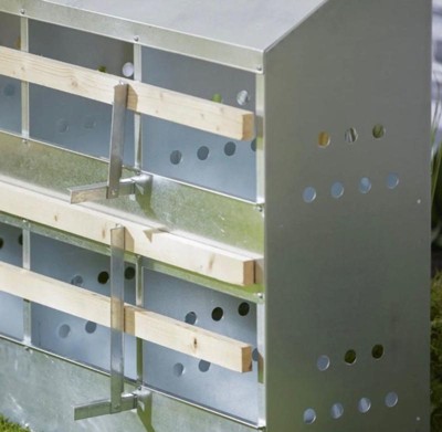 - Sturdy galvanized steel sides and slanted top are designed to withstand the elements