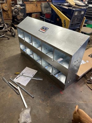 This pack of 2 poultry laying boxes is made from durable galvanized steel with folded edges for safety and a slanted roof to help keep your cluckers safe from the elements. The 10 bays provide room for up to 60 brooding hens and feature side ventilation holes for airflow. Stagger the nests back-to-back to prevent the hens from having full mobility if necessary. The outdoor hen house features double-bolted perches with hinged that allow them to be folded back easily as desired. Assembly and installation are made quick and easy with the included instructions. Setup takes under an hour and only requires a screwdriver and wrench; no rivet gun is necessary.