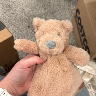 Such a soft lovey bear! My 8 month old has 2 of them now and loves to cuddle them. Helps him calm down and get down to sleep quicker. A must have for helping baby self soothe.