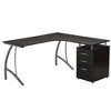 The Furnifact espresso brown L-shaped desk is designed to deliver maximum performance, storage, and flexibility in a single, space-conscious workstation. Constructed from heavy-duty MDF wood panels with a rich espresso brown PVC laminate finish, this desk offers durability, water resistance, and an elegant appearance that complements both home and office settings. The powder-coated steel frame features curved, scratch-resistant legs that add modern appeal and structural support. The generous L-shaped design fits comfortably into corners, helping you make the most of smaller rooms while offering an expansive desktop for multiple monitors, laptops, and writing space. The layout is reversible, allowing you to configure the long side on either the left or right to suit your specific room and workflow. For optimized organization, this L-shaped computer desk includes three drawers: two accessory drawers for supplies and a locking file cabinet for securing important documents or valuables. The corner configuration creates a natural division of tasks, making it an ideal choice for multitasking professionals or gamers who need a dual-purpose surface. Whether you're managing work, study, or gameplay, this espresso brown desk provides the ideal balance of style and substance. Its smart design supports focused productivity, secure storage, and comfortable day-to-day use in any setting. The product will be delivered in its original manufacturer packaging.