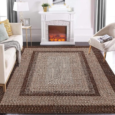 Brown Machine Washable Low Pile Area Rug with Non-Slip Backing, Geometric Design, for Living Room, Bedroom, Entryway, Indoor and Outdoor Use, 5x7 Feet