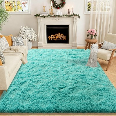 Brown Tie-Dye Shag Area Rug, Soft Plush Carpet with 4 Non-Slip Pads, Multiple Sizes for Bedroom or Living Room camel 96x120 in