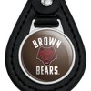 - QUALITY MATERIAL: Our durable round keychain is crafted from leather with a glossy resin-topped emblem featured design shown on one side. Approximately 1.5" (3.8cm) x 2.5" (6.4cm) in overall size, emblem is 1" (2.5cm)..