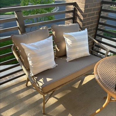 Great outdoor loveseat for the price! Easy to set up and pretty sturdy. We've had this for about a month and a half and have zero complaints thus far! The only thing I don't love is a beige seat cushions but I added some pillows to brighten it up. We also added this to another set we owned and it looks great together!
