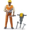Bruder product line offers a host of products - from lorries to construction machinery, excavators, cranes and much more - which include even the most minute detail of the originals. Complementing this range in an ideal way are toy figures which add an element to the toy landscape that makes playing in it even more fun and realistic, encouraging children to engage in role play and nourish their creativity. The construction worker with accessories is the ideal supplement to any construction vehicle that is part of the product line. Just to be "safe", We included a hard hat and a high-visibility vest to allow the worker to start working right away. The set also includes a Jackhammer as well as five additional tools, allowing the children to engage in a multitude of play scenarios. The high-visibility vest and the hard hat can be detached.