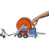 Whether sports grounds, nurseries, orchards or other large areas where a constant and consistent water supply is required, irrigation trailers have their place of use. This important machine for successful agriculture is now available in BRUDER’s extensive range. Young farmers can use the crank to unroll a 1.8-metre-long hose, to which an accurately detailed sprinkler truck is attached. True to the BRUDER motto “Just like the real thing”, it features a tank with a functioning pump. The pump system allows water to be distributed easily and realistically. This exciting irrigation trailer can be towed by all BRUDER tractors from the agriculture themed world.