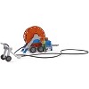 - Large hose reel with crank, 1.8 metre hose, Removable sprinkler truck, Extending stabilisers,& Foldable front stabilisers