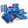 The Lemken company offers its customers an extensive range of products for soil treatment, sowing and plant protection. There are just as many soil treatment processes as there are different types of soil. To make soil treatment faster and more efficient, farmers have resorted to combined procedures capable of yielding excellent results even in less-than-perfect weather conditions. An example of such an implement is the Solitair 9 sowing combination from Lemken. With this impressive trailed implement Bruder once again proves that original high-tech vehicles can be converted into very attractive toy vehicles with an outstanding fun factor. This is a truly innovative expansion of Bruder's line of farming equipment.The circular spike harrows and seed units can be folded up to realistically imitate real-life road travel