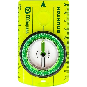 The world's most recycled compass! The Brunton Scout ECO Compass is a traditional scouting compass made of over 80% recycled and reclaimed acrylic. Even the lanyard is made from recycled plastic bottles. The high contrast green/white azimuth ring enables quick and accurate navigation, while a larger baseplate is perfect for trip planning and classic route-finding. Features: Baseplate made from recycled and reclaimed acrylic. Lanyard made from recycled soft drink bottles (RPET). Global Needle tilts up to 20 degrees for balanced use worldwide. Tool-free declination adjustment is simple and fast to orient magnetic north to true north. Inch/millimeter scales for accurate and effective map work. Map magnifier helps with the smaller details on any map. 2 degree resolution azimuth ring provides accurate readings. FSC-certified and recyclable packaging. Made in the USA in Riverton, Wyoming.