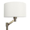 - The sleek brushed nickel finish and curved metal base add a touch of elegance to any space, while the warm and inviting glow from the linen shade creates a cozy atmosphere. Plus, with its easy on/off switch, this lamp is the perfect addition to your home or office.