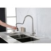 This brushed nickel kitchen faucet exudes a contemporary vibe with its smudge-resistant, sleek finish. The high-arc spout is ideal for large pots and pans, fitting busy kitchen needs. The single-lever design ensures easy water control, and the pull-down sprayer aids in precise cleaning. It comes with a deck plate for a neat install, suiting both single and multiple hole setups.